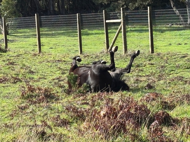 The horses (Tule and Cali) are fat and happy in the verdant green pastures this equinox, as they profusely shed their itchy, bleached winter coats in great drifting wind driven clumps that adhere to everything, and which the breeding birds are eagerly harvesting for nesting material.