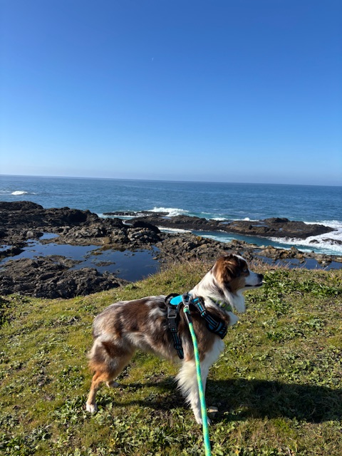 Last spring equinox it was seven chicks and an orphaned/abandoned rabbit, who have grown up into thriving permanent residents at Wave Cut Ranch. And this vernal equinox it is our beloved new ranch dog, Starla! A rescue Australian Shepard extraordinaire ~